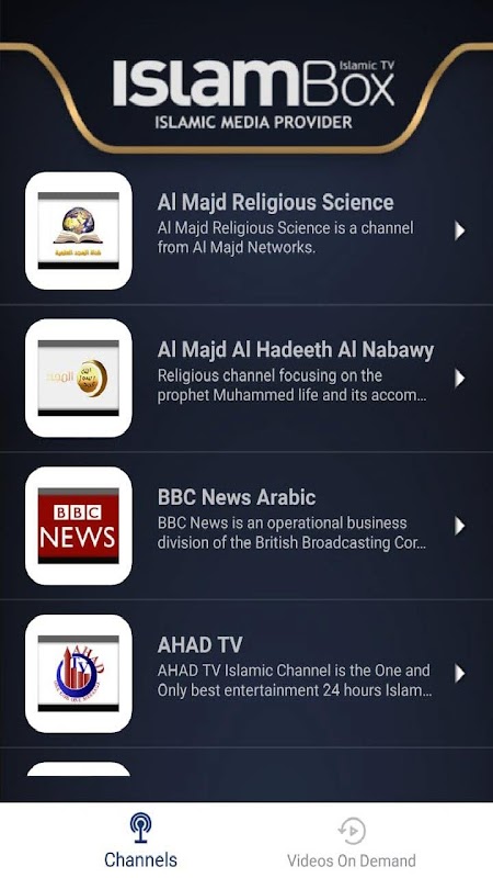 IslamBox - Islamitische media bouwt op een remarkble tarief mashaAllah. Echter, het bekijken van al deze kanalen is het vrijwel onmogelijk vanuit huis, zonder de aanschaf van grote satellieten met een nog grotere rekeningen. Nu met de islam Box kunt u Islamic Media bekijken vanuit Pakistan (QTV), het Verenigd Koninkrijk (Islam Channel), de VS (Bridges TV), India (Peace TV), Saoedi-Arabië (Saudi 1 en 2); samen met een aantal andere kanalen insha Allah. Dit alles vanaf elke waar in de wereld, zolang je Android-telefoon is verbonden met wifi of 3G.