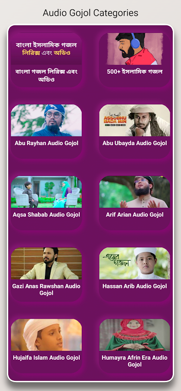 Ontvang alle populaire en nieuwe islamitische Gojol van populaire islamitische artiesten, waaronder Munaem Billah, Gazi Anas Rowshan, Aqsa Shabaab, Mahmud Faysal en nog veel meer zangers in de Islamitische Gojol-app.