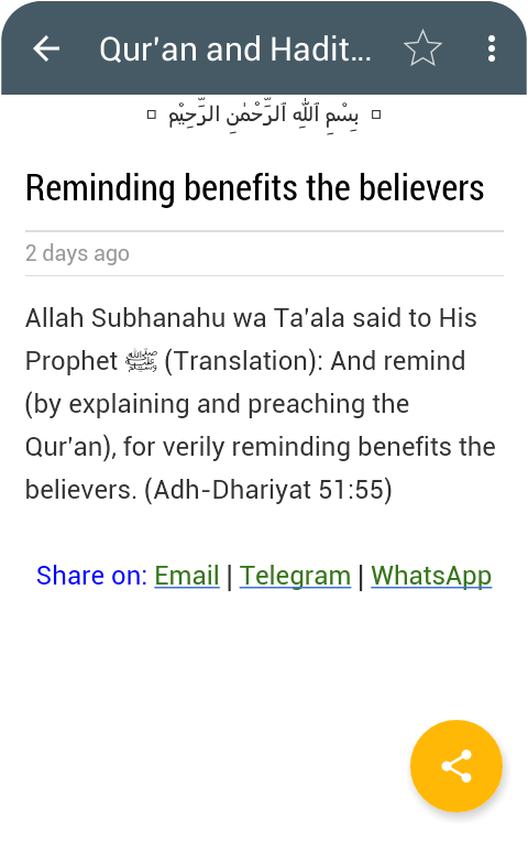 - Islamitische Berichten kunnen eenvoudig worden gedeeld in Whatsapp, Telegram, E-mail etc