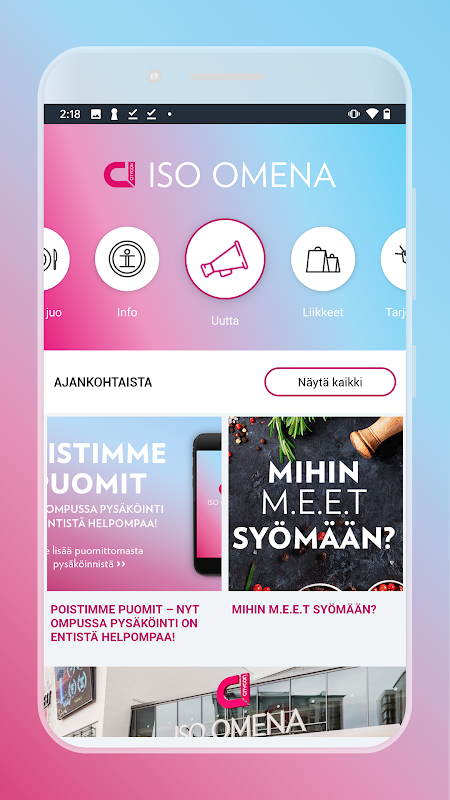 Door de toetreding tot het winkelcentrum Iso Omena klant u profiteert van het begin te krijgen.