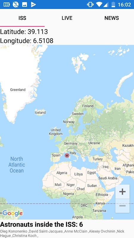 Het internationale ruimtestation ISS beweegt bijna 28.000 km / u, dus de locatie verandert heel snel! Waar is het nu met deze app kun je een kaart hebben die je in realtime laat zien waar het ISS is met de huidige coördinaten en de astronauten in de iss, je kunt ook de officiële streaming bekijken die het uitzicht vanaf het internationale ruimtestation naar de aarde laat zien en je kunt ook de NasaTV-streaming zien, op het laatste tabblad vind je het laatste nieuws over het International Space Station en Nasa met officiële tweets om alles te zien waarvoor je je verbinding moet hebben ingeschakeld of anders kun je geen verbinding maken met het International Space Station.