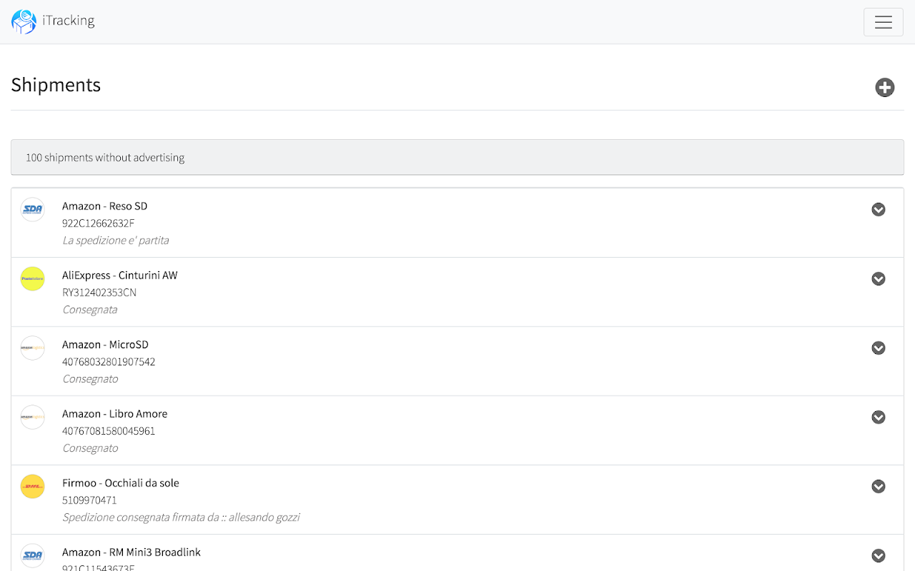 eBay, Amazon, Apple Store, from whatever the site from where your shopping, control their shipments will be really simple, choose the courier concerned, enter or photograph the shipping number and click Find ... the rest will think iTracking that thanks to push notifications inform you step by step about the status of your shipment.