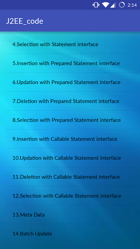 The Application has been developed to emphasis on the basic codes of JDBC and Servlet. This Application consists of two modules such as JDBC and Servlet. Each modules includes various sub modules which comprise of admirable codes like ServletLifeCycle Code, Servlet Chaining, Insertion with interface (statement,prepared,callable), Updation with interface (statement,prepared,callable), Deletion with interface (statement,prepared,callable) and Fetching with interface (statement,prepared,callable) , etc.