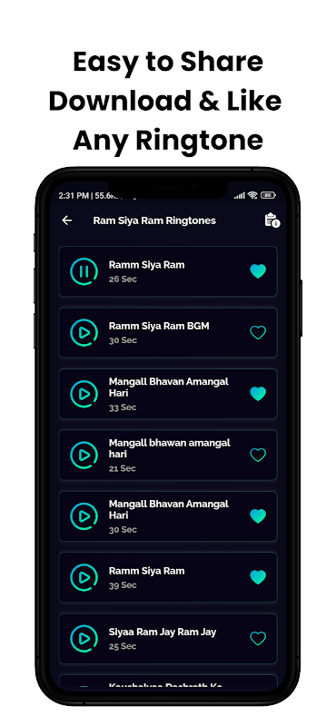 Selecteer gewoon de categorie Ram Siya Ram Ringtones. Daar ziet u de lijst met alle Ram Siya Ram Ringtones. Speel gewoon elke beltoon en kies je favoriete beltoon. Klik gewoon op die beltoon en u kunt de downloadknop daar zien. Klik gewoon op die downloadknop en uw beltoon wordt met succes naar uw smartphone gedownload.