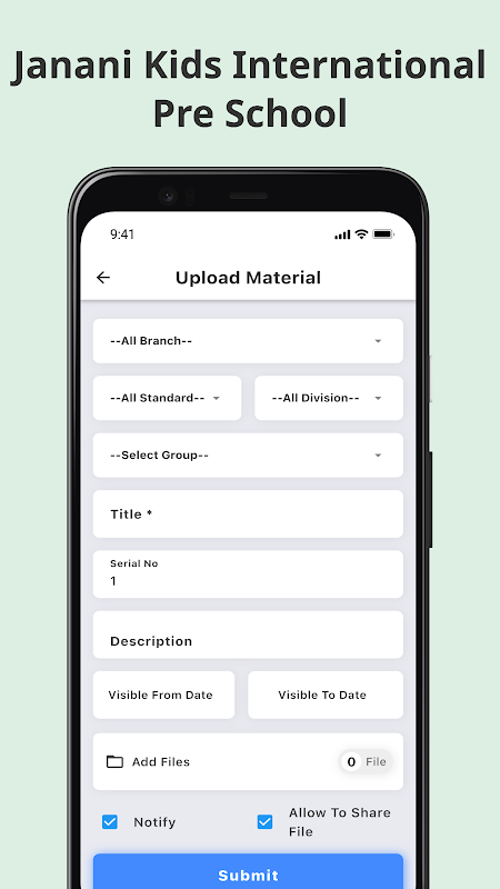 Janani Kids International Pre School Android-app voor leerlingen, ouders en leerkrachten om informatie over de instelling te bekijken en te downloaden.
