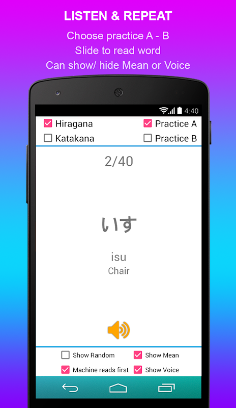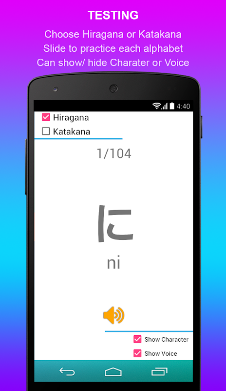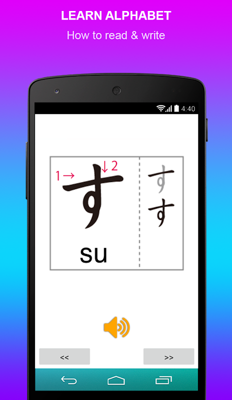 De app ondersteunt ons leren en onthouden de Japanse Alfabet in de snelste manier