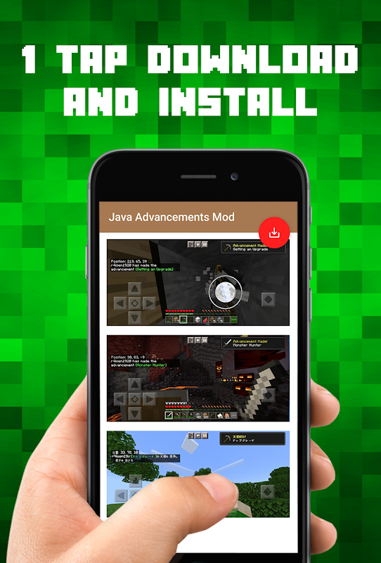 Deze Java Advancements Mod voor Minecraft PE-applicatie helpt je bij het downloaden en installeren van de "AdvancementPack - Java Achievements & Advancements Into Bedrock"-add-on in je Minecraft Pocket Edition-spel. Vergeet al die File Explorer of BlockLauncher en krijg dingen sneller en gemakkelijker gedaan met ons installatieprogramma met één tik.
