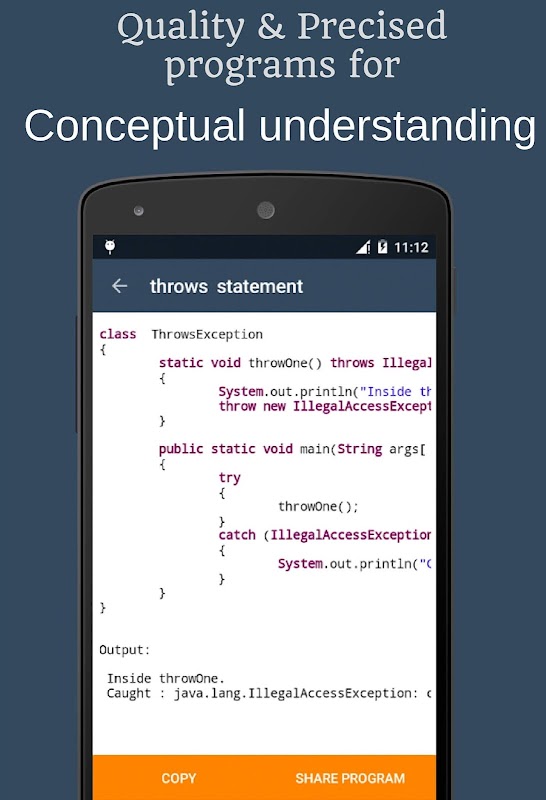 To rock java programming you must develop your skill with example or programs. Java Examples App app helps you to refer a great collection java programs on the go and Helps you improve Logical thinking of various problems related to Programming. Java Examples Application give source code and output for various Java Programs or examples.