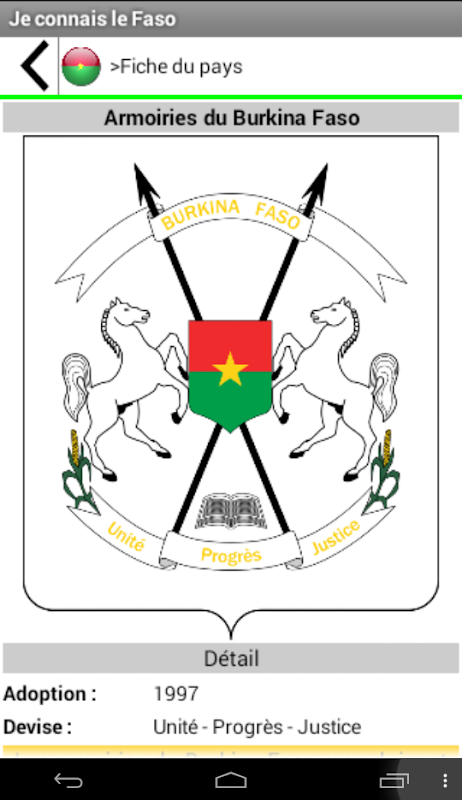 Ik weet Faso is een gratis applicatie voor mobiele en Android tablet ontworpen om bekend maken den Burkina Faso in Burkina Faso, vrienden van Burkina Faso en in het buitenland en ook helpen studenten.