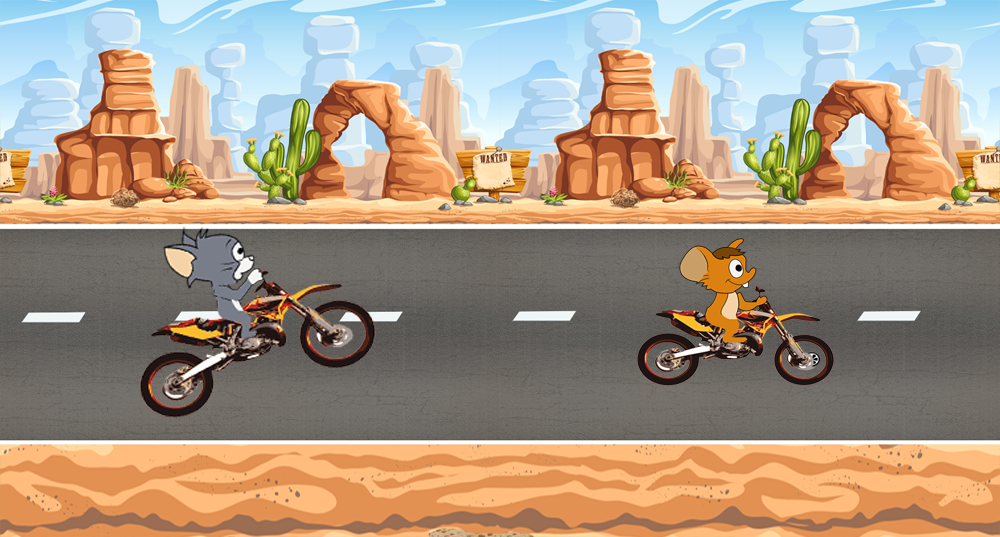 The best, simple and fun racing game for kids! This free game is designed for kids whos love Tom And mouse jerry Choose your means of transport and cross the finish line. Take control of your moto at your fingertips and watch the moto turn, jump and roll. The other racing games for your child are too difficult or annoying for complicated levels and difficult management. This game Tom and Mouse and jerry is what you are looking for.
