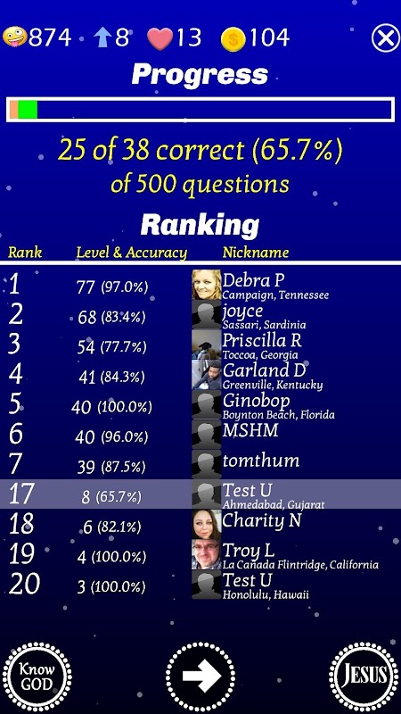 Hoewel de eerste 500 Bijbeltrivia-vragen in het spel dat zijn, is het aan jou om de juiste antwoorden te krijgen. Zelfs met één leven kun je voor altijd spelen als je antwoorden goed zijn. Hoe goed ken jij je Bijbel?