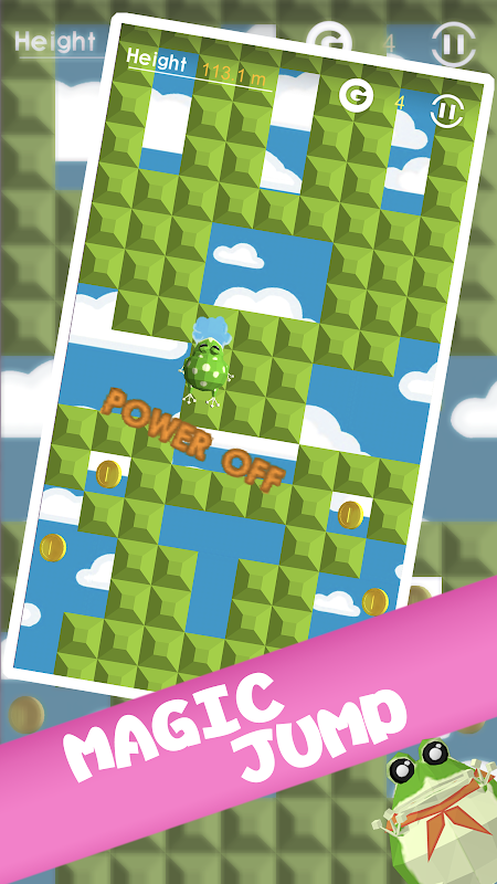 Sliding the screen, the frog will use its tongue's elasticity to bounce itself higher