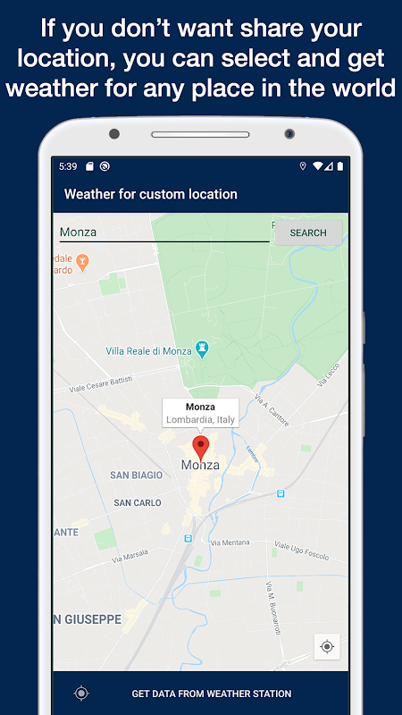 Deze app kan automatisch de positie en hoogte verkrijgen om de temperatuur, druk en vochtigheid van het dichtstbijzijnde weerstation via internet te verkrijgen. Interne barometer wordt gebruikt op ondersteunde apparaten voor betere precisie. Als er meer nauwkeurigheid nodig is, kan ook een draagbaar weerstation worden gebruikt. Applicatie kan draaien zonder GPS, WiFi en internet, in dit geval moet de gebruiker de weergegevens handmatig invoeren.