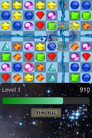 Instead of switching the positions of two gems vertically or horizontally, the cursor in Jewels Twist is a circular lens that rotates eight gems clockwise on the gameboard.