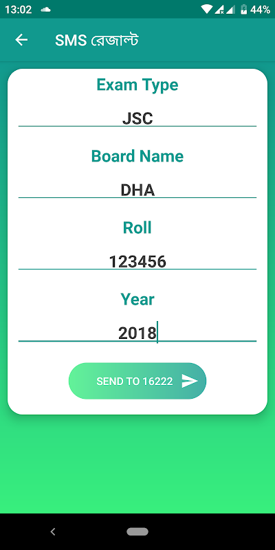 ২। অ্যাপের SMS রেজাল্ট অপশানে যেয়ে সকল তথ্য পূরণ করে সেন্ড করলে রেজাল্ট দেখতে পারবেন।