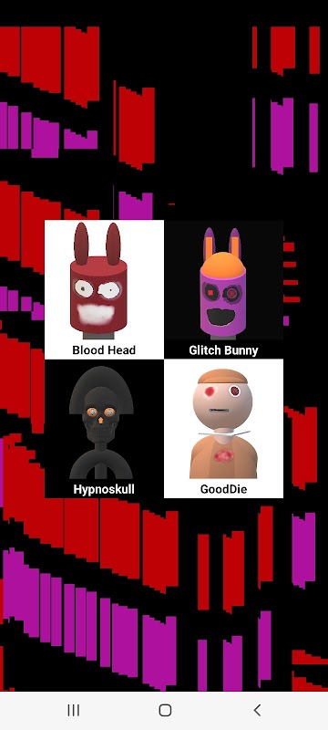 Click on the characters (Blood Head, Glitch Bunny, Hypnoskull, GoodDie) button and after a few seconds they jump on your screen