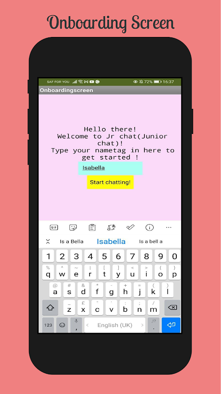 "Dit is de Junior Chat-app. De Junior Chat-app is bedoeld om te chatten en te communiceren met vrienden en familieleden." ~Aliss