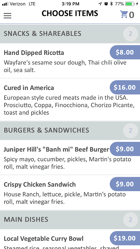 Juniper Hill is happy to announce online ordering with our new Android app. Now you can order any item from our menu quickly and easily.