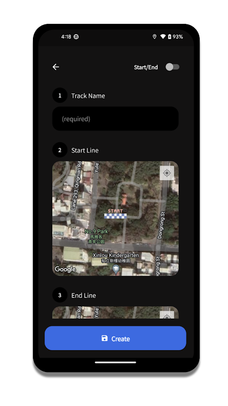 K Lap biedt een baaneditor om overal een ronderace en start-finish tijdrit aan te passen.