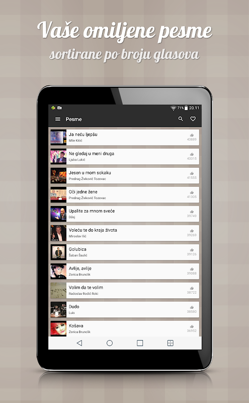 Top barroom liedjes en pubs van de website http://www.kf.rs, gesorteerd op het aantal rangen en uw stem. Blijf op de hoogte van de actualiteit, beelden verzenden van het nachtleven en geen meer nummer met Kafanski Reminder niet vergeten!