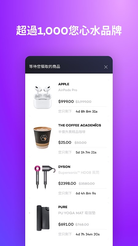 Hong Kong's enige tijdelijke snap-up transactie-applicatie die een gamified winkelervaring biedt. Ontvang hoogwaardige goederen met een mysterieuze korting tot 50%. Boek nu in de app en ervaar meer in de winkel!
