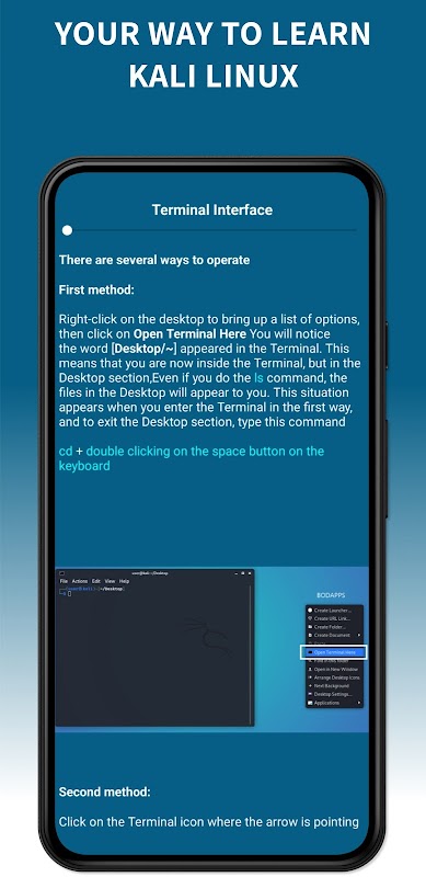 De Kali Linux Tutorials-app helpt je bij het leren installeren van Kali Linux en de basisprincipes van de terminal. Ook bevat de app uitleg over de belangrijke onderdelen van tools en informatie op het gebied van cybersecurity.