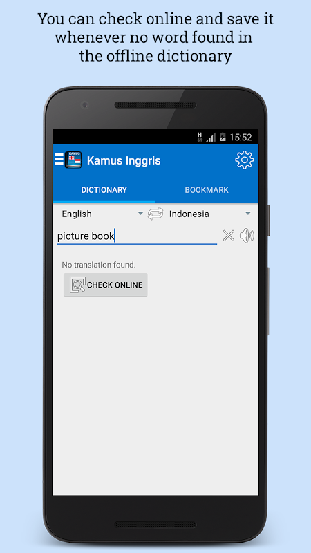 Gebruikers kunnen ook gebruik maken van de online vertaling (Bing Translator) voor de woorden die niet zijn gevonden in de Indonesische Engels woordenboek applicatie.