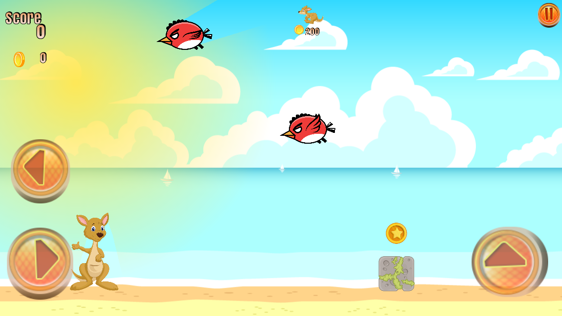A cool KANGAROO character jumps and runs along the beautiful beach of the Australian coastline to collect coins and escape a rush of obstacles and enemies.