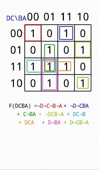 Van 3-7 variabelen vereenvoudigt functies geïntroduceerd door logische uitdrukking, het markeren van een waarheid tafel, of het kiezen van maxterms minterms.