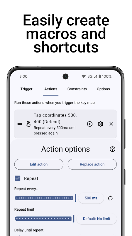 Bouw complexe macro's met schermtikken en gebaren, toetsenbordinvoer, open apps, bedien media en verstuur zelfs intents rechtstreeks naar andere apps.