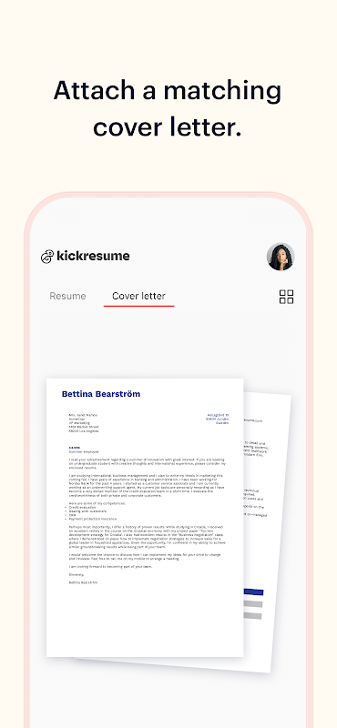 Met de mobiele AI-cv-generator van Kickresume kun je gemakkelijk onderweg je cv's en sollicitatiebrieven maken en bewerken. Je kunt het alleen op je iPhone gebruiken of verdergaan waar je gebleven was op je desktop (en desgewenst weer verdergaan op je iPhone). Al je cv's, ontslagbrieven en sollicitatiebrieven worden in de cloud opgeslagen en zijn altijd en overal toegankelijk, ongeacht de locatie, het apparaat of de locatie.