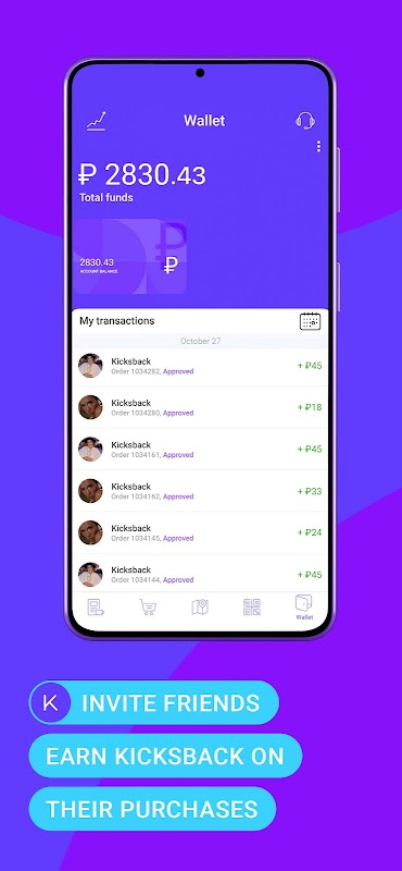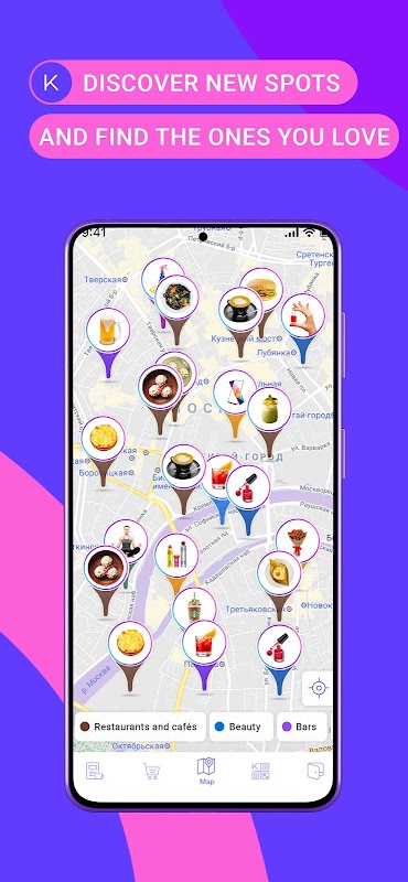 • Is uw vriend naar een door u aanbevolen plaats gekomen en heeft hij een aankoop gedaan? Uitstekend! Je krijgt meteen een kicksback! U kunt geld besparen in de portemonnee van de app of het op een gemakkelijke manier overboeken.