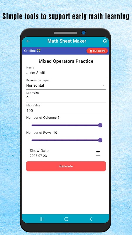 Math Sheet Maker helpt ouders en leerkrachten om eenvoudig afdrukbare rekenbladen te maken voor basisschoolleerlingen – direct vanaf hun smartphone.