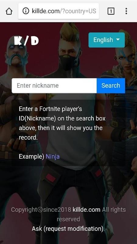 With 'Killde.com', you can search a player's game record provided by Fortnite.