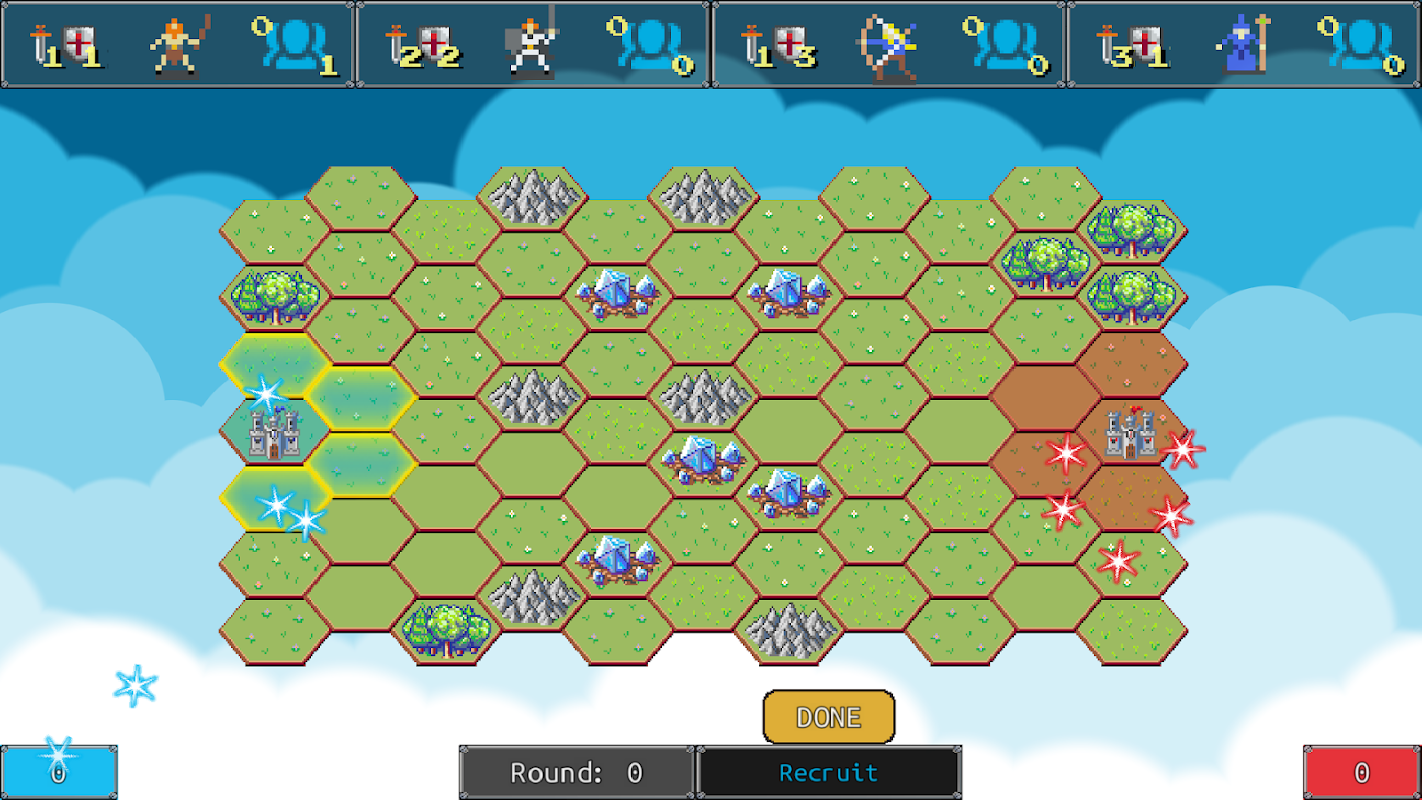 Recruit an army, spread across the land to claim territory, battle your rival kingdom, and claim their castle before you run of space.