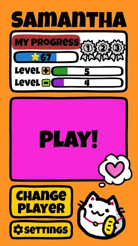 Oefening baart kunst. Er is een beloningssysteem om KittyKitty's outfits te verzamelen om kinderen aan te moedigen meer vragen te stellen.