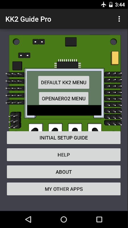 KK2 Guide is meant to help you with basic KK2 firmware and with OpenAero2 firmware, when you are flying in field and need basic settings information fast. If you love KK2 then this app is for you!