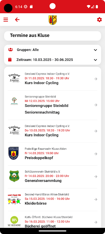 Deze app biedt u uitgebreide informatie over aankomende evenementen van clubs, groepen en verenigingen in Kluse en Steinbild. Met slechts een paar klikken selecteert u de groep van uw voorkeur en de gewenste periode en ontdekt u alle relevante data bij u in de buurt.