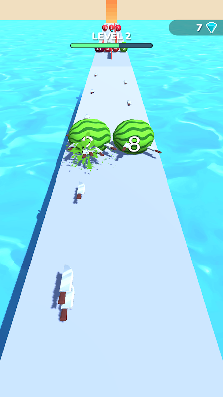 -Collect knifes and hit numbered fruits
