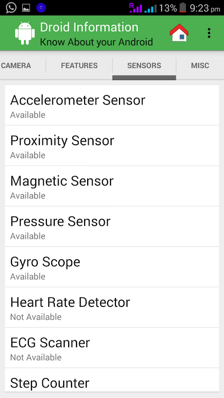 Starting from "Unique Ids" to "hardware details","sensors available" every detail you want to know will be presented in app's UI.