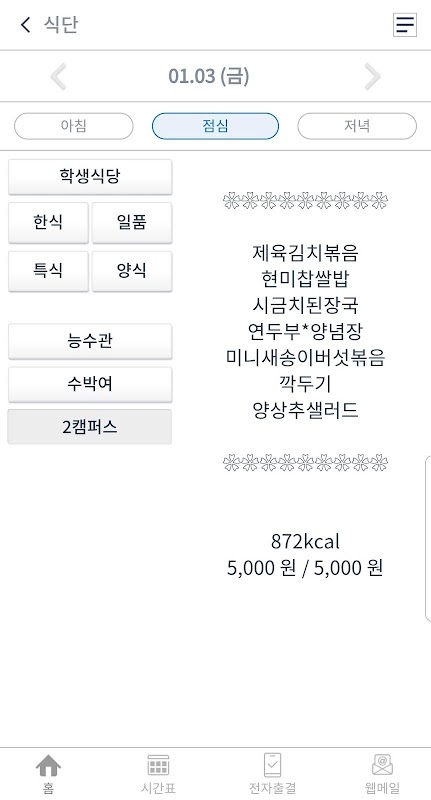 - Dieet: bekijk het ontbijt-/lunch-/dinermenu van de schoolkantine
