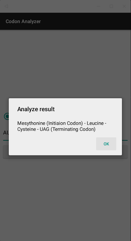 Voer gewoon uw codon-loist in en deze toepassing brengt ze over op aminozuurnamen.