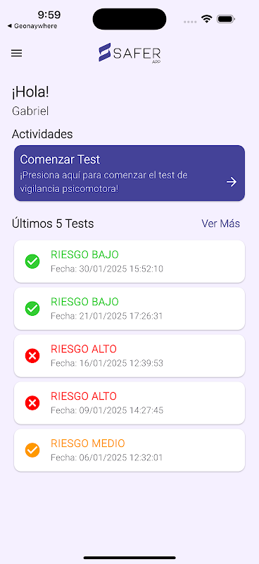 SafferApp is een psychomotorische waakzaamheidstest (PVT) die is ontwikkeld om de alertheid op de werkplek te beoordelen. De implementatie ervan draagt bij aan het versterken van veiligheidsprogramma's bij risicovolle activiteiten, zoals autorijden, en wordt een belangrijk instrument voor ongevalpreventie.