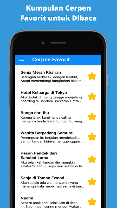 Vind uw favoriete korte verhalen en sla ze op in uw favorietenlijst om een verzameling van uw favoriete korte verhalen te creëren. Met deze applicatie kunt u gemakkelijk korte verhalen vinden die bij u passen.