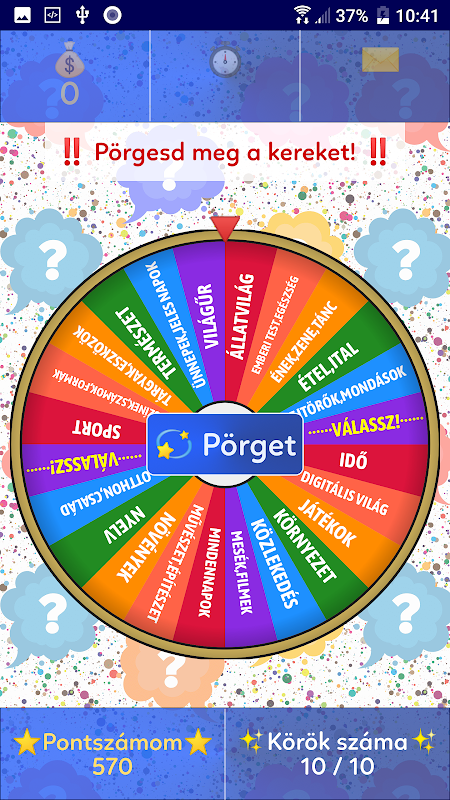 Draai de categorie met behulp van het rad van fortuin en beantwoord de vragen correct. Quizspel voor kinderen of volwassenen die van eenvoudigere vragen houden.