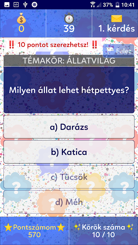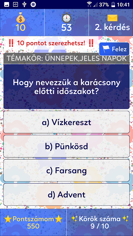 Je krijgt 10 punten voor elk goed antwoord. Uitzonderingen zijn de vragen 5 en 10, waarvoor 20 en 50 punten worden toegekend. Na het juiste antwoord kun je beslissen: stop en behoud je punten, of ga verder en riskeer dat je punten gehalveerd worden als je niet goed antwoordt. U kunt maximaal 10 vragen achter elkaar beantwoorden.