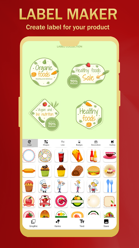 Ontdek eenvoudigweg het aanbod aan professioneel gemaakte labelsjablonen en voeg tekstuele gegevens of visuele pictogrammen toe, verwijder of bewerk ze zonder enige beperking. In tegenstelling tot veel andere labelmakers die online beschikbaar zijn, vereist deze applicatie geen ingewikkelde procedure voor het maken van labels en stickers. Bovendien is deze labelmaker-applicatie volkomen veilig in gebruik. Er is geen virus of Trojaans paard aan deze applicatie voor het ontwerpen van labels gekoppeld. Met deze gratis labelmaker-app kun je boeiende labels maken met je eigen creativiteit. Bovendien is het helemaal niet nodig om een professionele ontwerper in te huren of uw ideeën met iemand anders te delen. Installeer deze applicatie eenvoudig op uw smartphone en begin meteen met het schetsen van wat u in gedachten heeft.