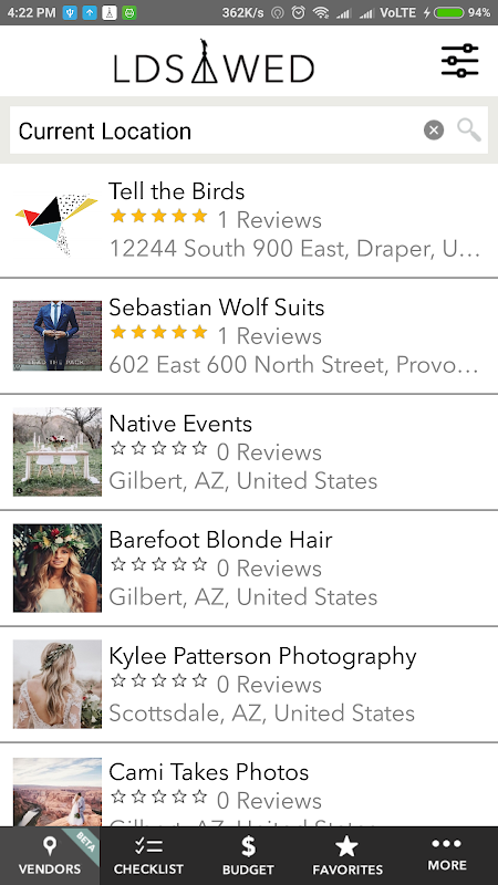 - View vendor photos, contact info, map, and website