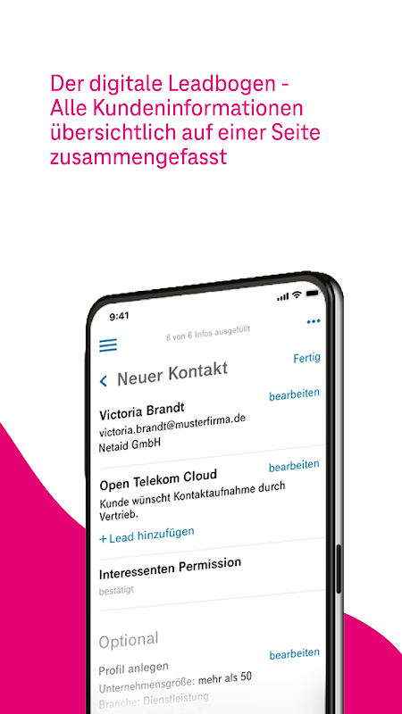 Die Anwendung richtet sich an Berater der Telekom und von T-Systems sowie an Partner der Telekom. Mit Hilfe einer App-unterstützten Checkliste werden Kundengespräche automatisch um den jeweiligen Beratungskontext ergänzt und können reibungslos in CRM-Systeme integriert werden.