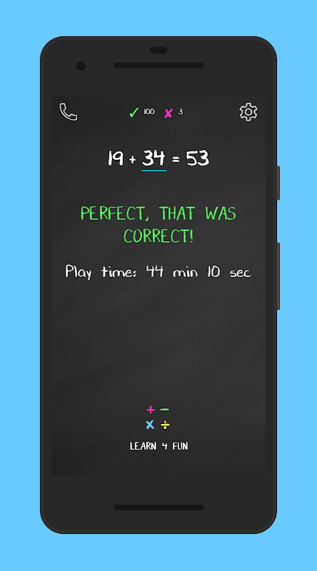 Learn 4 Fun works like a screen lock. Before accessing the apps or games on the phone or tablet, your kids have to solve some math exercises first and are rewarded with play time.
